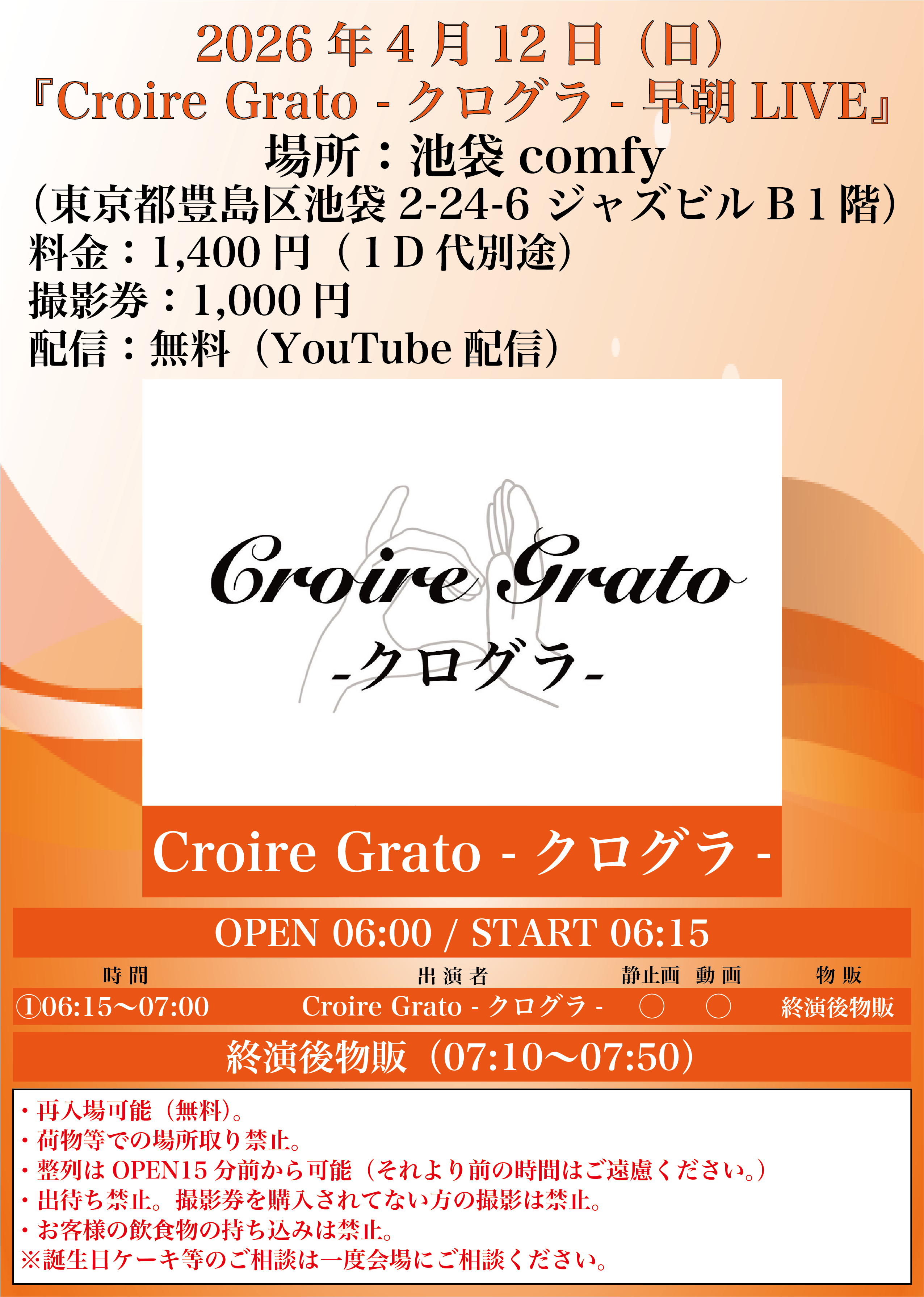 4月12日 Croire Grato-クログラ- 早朝LIVE 遠隔支援
